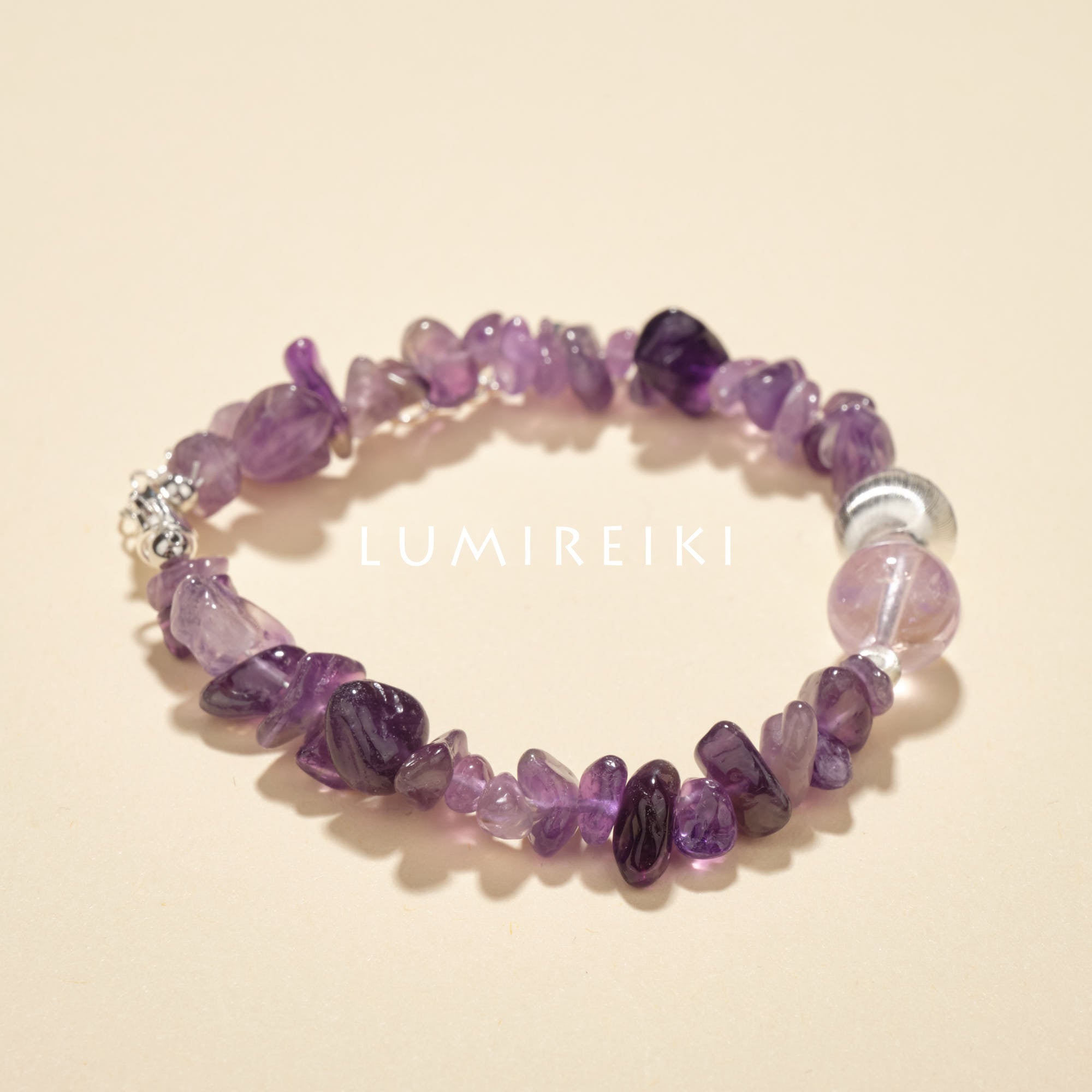 Amethyst (10.5mm): Aligns with the crown chakra. Sourced from Brazil/Uruguay, it eases insomnia, soothes nervous tension, and balances hormones. Emotionally, it relieves stress, sharpens spiritual perception, and keeps your mind clear and intuitive in complex situations.