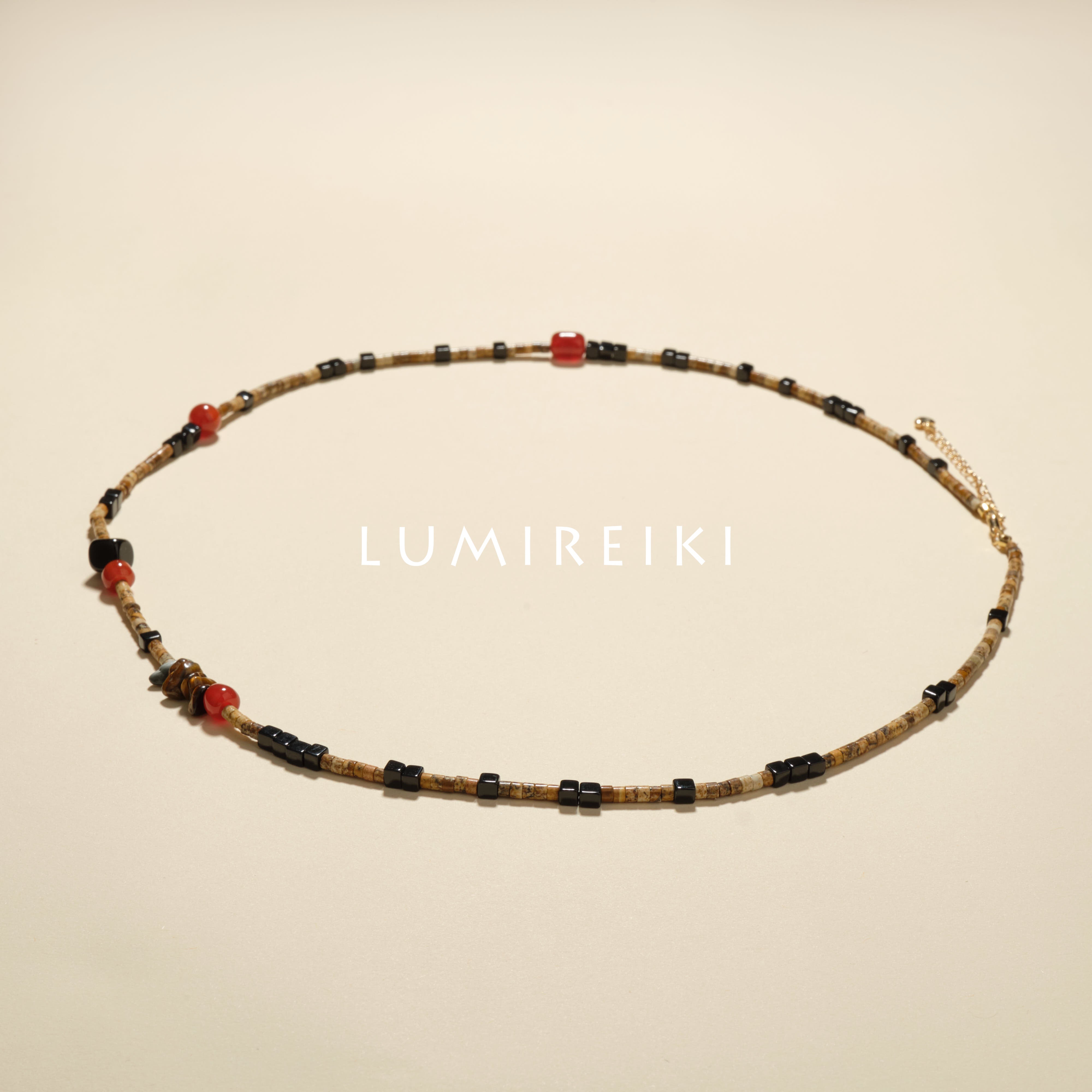This necklace aids those with physical fatigue or emotional stress. It soothes joint pain, boosts energy, and sharpens focus during busy workdays or fitness. Black Onyx calms anxiety, while Red Agate and Tiger's Eye enhance stamina and decision-making. Wear to turn exhaustion into resilience and stress into clarity.
