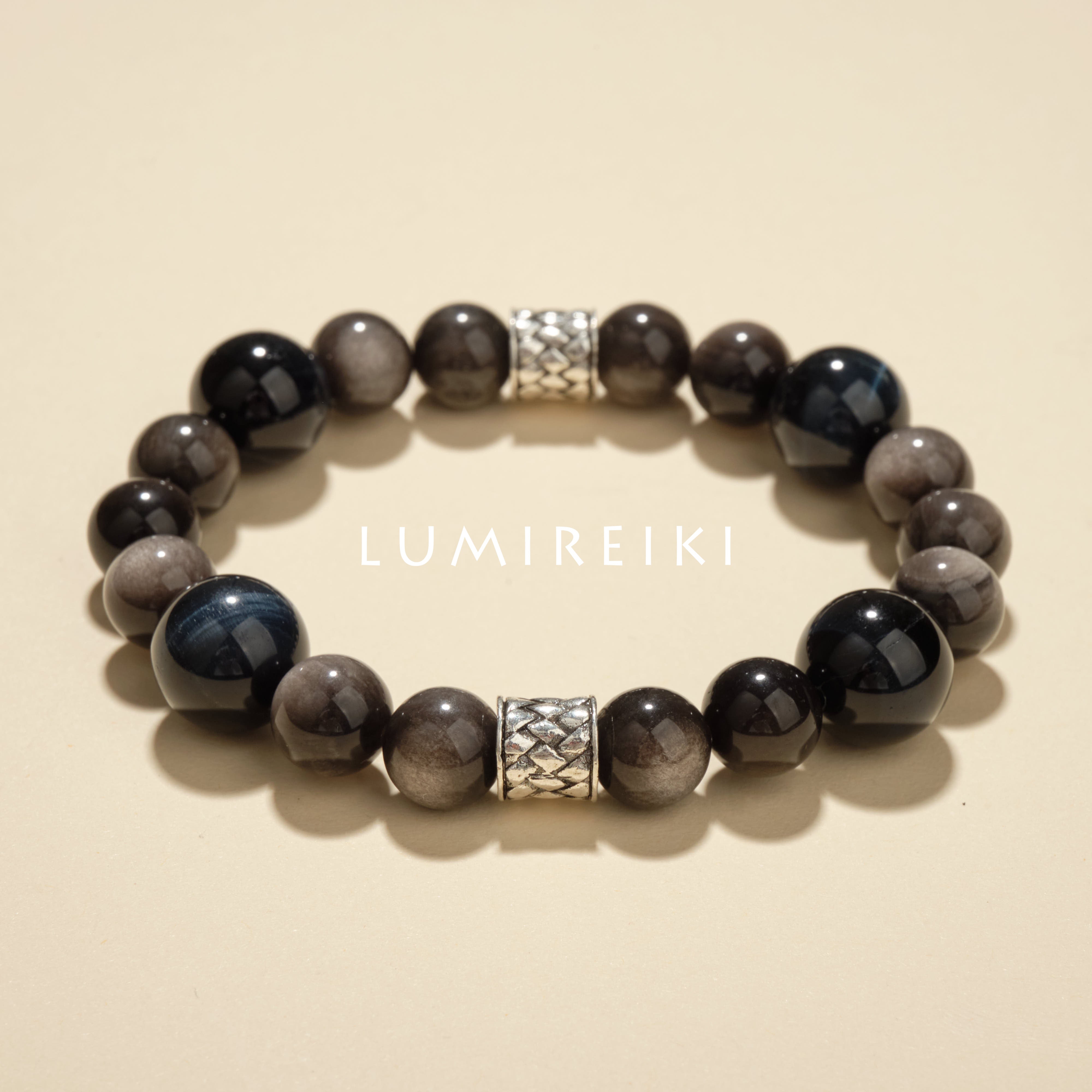 Silver Sheen Obsidian (9.8mm): Shields against negative energy, relieves muscle tension, and strengthens emotional security, grounding you in chaotic moments.