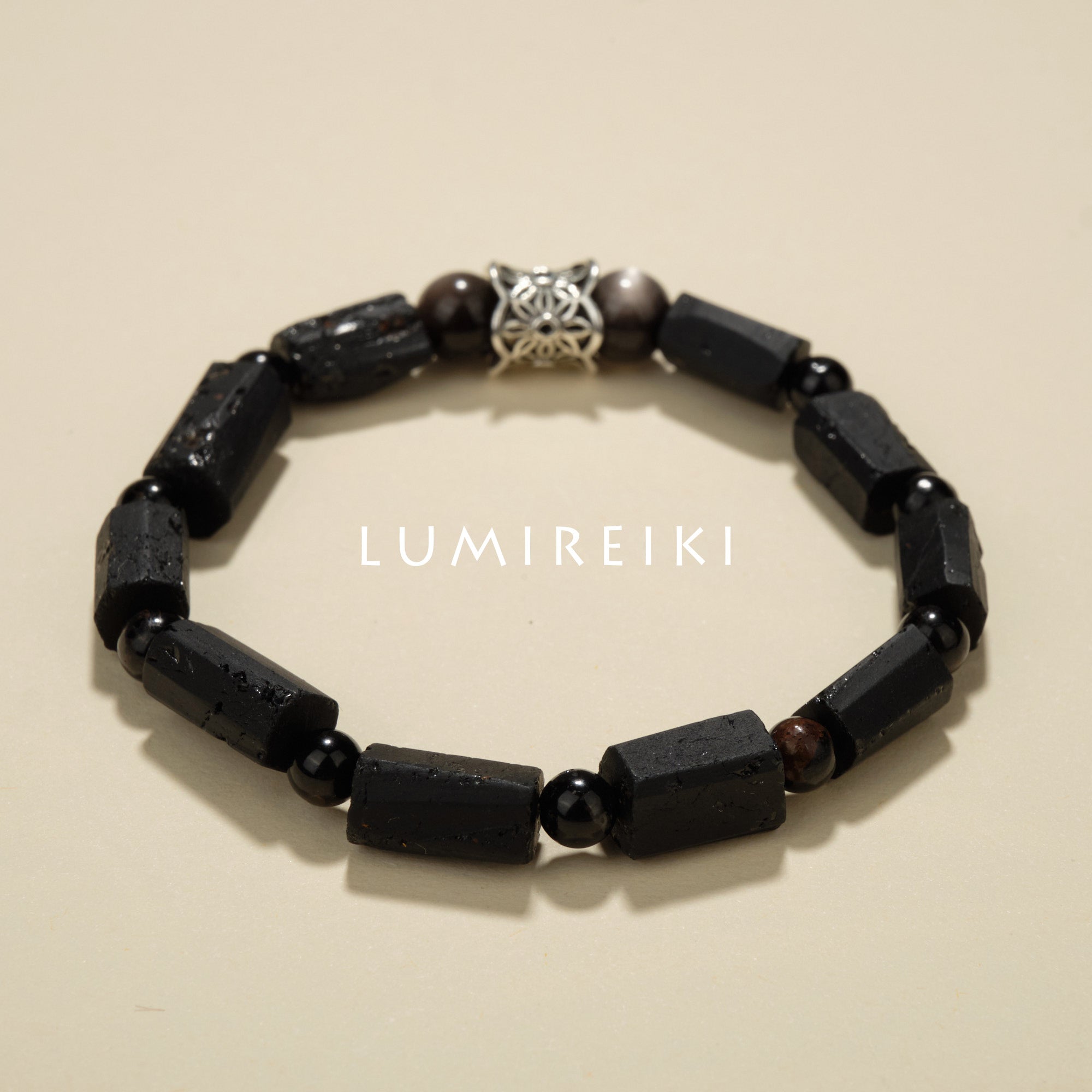 Esta pulsera es para quienes se sienten abrumados por el caos de la vida, ya sea por las fechas límite, agobiados por el estrés constante o asfixiados por la negatividad. Imagina una mañana llena de correos electrónicos consecutivos, una noche llena de preocupaciones o un día en el que cada interacción resulta agotadora. La obsidiana plateada interviene en esos momentos, despejando el desorden mental y aportando calma cuando tu mente está acelerada. La turmalina negra ayuda cuando el estrés se siente pesado, absorbiendo la fatiga y protegiéndote de las vibraciones abrumadoras. Úsala durante reuniones de alta presión, desplazamientos caóticos o noches en las que no puedes dormir: deja que sea tu ancla de tranquilidad, purificando tu energía y estabilizando tu espíritu en la tormenta.