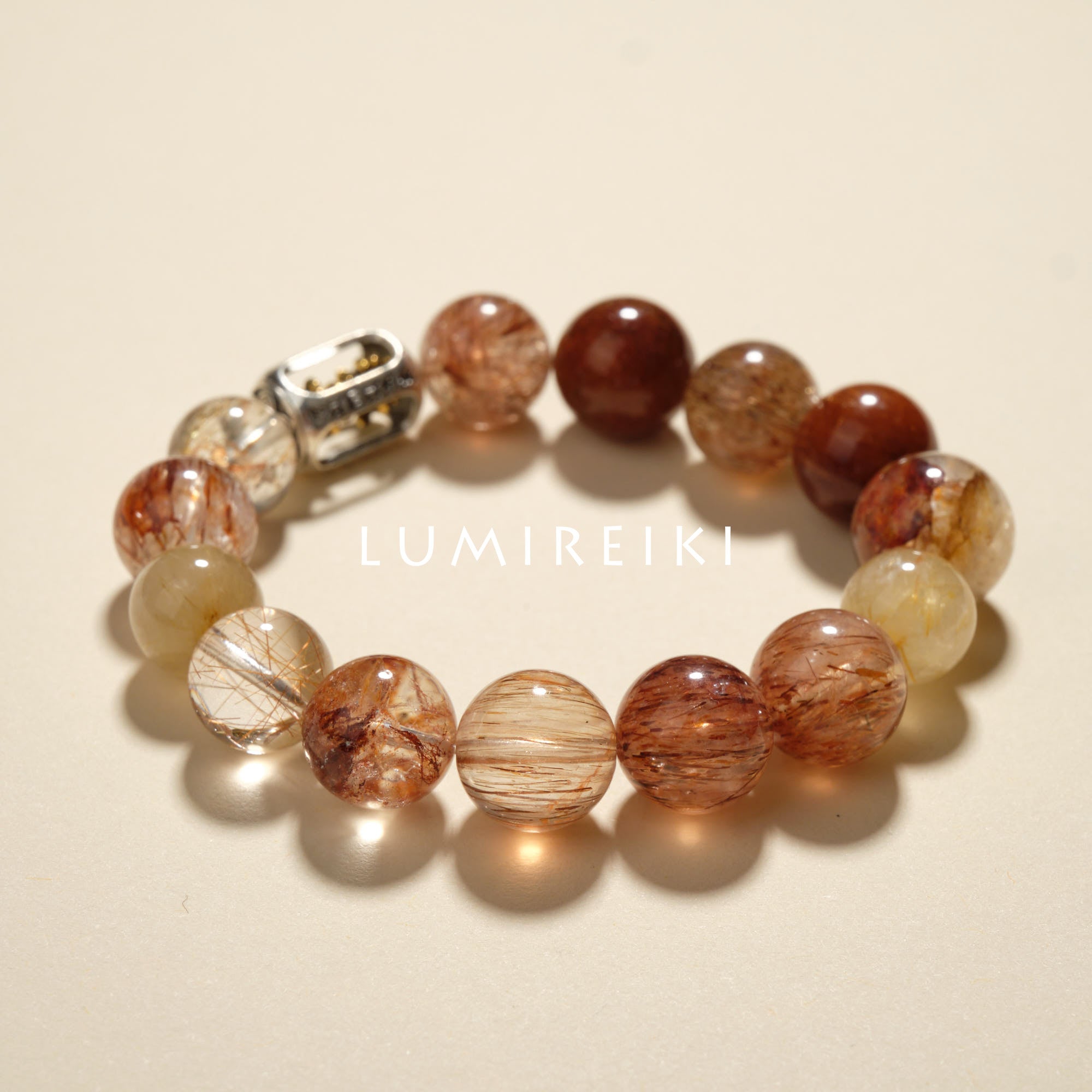Copper Rutilated Quartz (13.7mm): Boosts personal aura, fuels confidence, unlocks potential, and attracts wealth for career success.