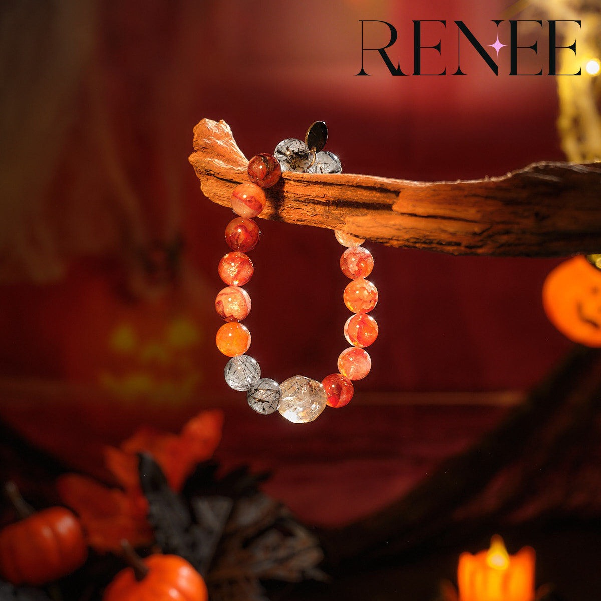 The red crystal simulates the eerie red light in the skull's eyes, the black crystal represents the skull's mysterious skeleton, and the transparent crystal embellishment is like the mysterious lines on the skull, creating a fantasy atmosphere of a skull carnival and conveying the joy and mystery of the festival.