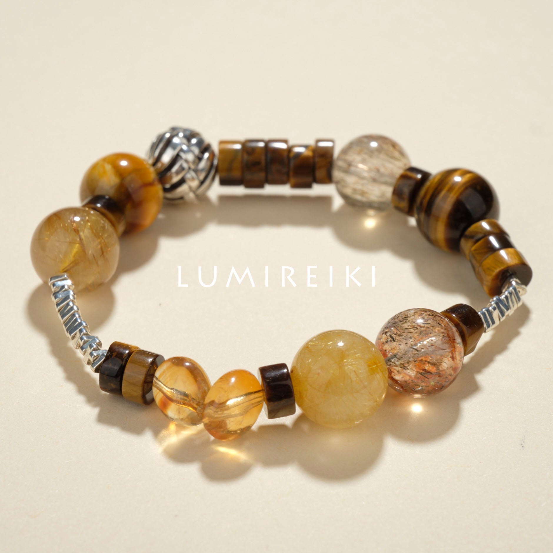 Libera tu imán interior para el éxito con nuestra Pulsera Rutilada Dorada Prosperidad Ignite. El Cuarzo Rutilado Dorado de 12,3 mm es una fuente inagotable de energía que potencia tu motivación, agudiza tu liderazgo y atrae la riqueza y las oportunidades directamente a tu órbita. Combinada con Ojo de Tigre Arcoíris para decisiones audaces, Oro Negro Super Seven para alejar la negatividad y Citrino para amplificar la abundancia, esta pulsera transforma la ambición en acción. Úsala para alcanzar tus metas, irradiar confianza y transformar cada día en un paso hacia la vida próspera que mereces: sin límites, solo resultados.