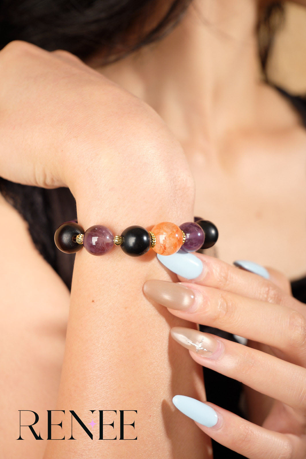 Amethyst helps calm the mind and enlighten wisdom; black agate can ward off evil and soothe emotions; red gum can stimulate energy and promote interpersonal relationships.