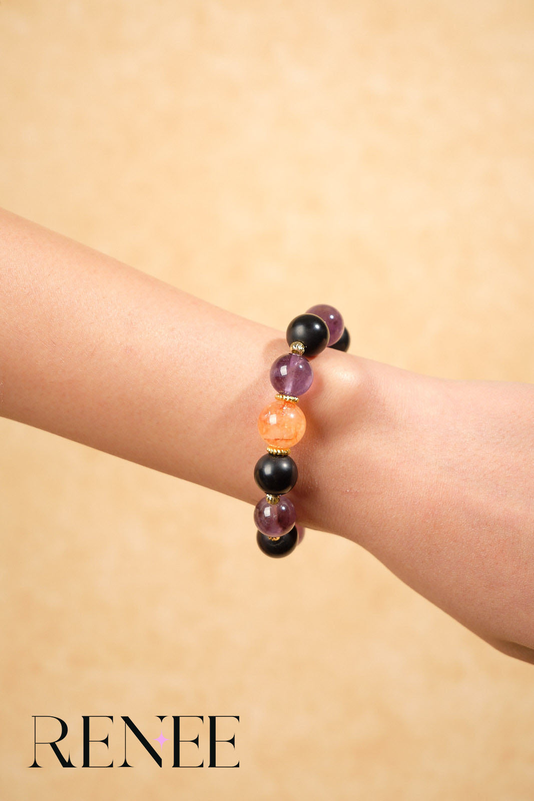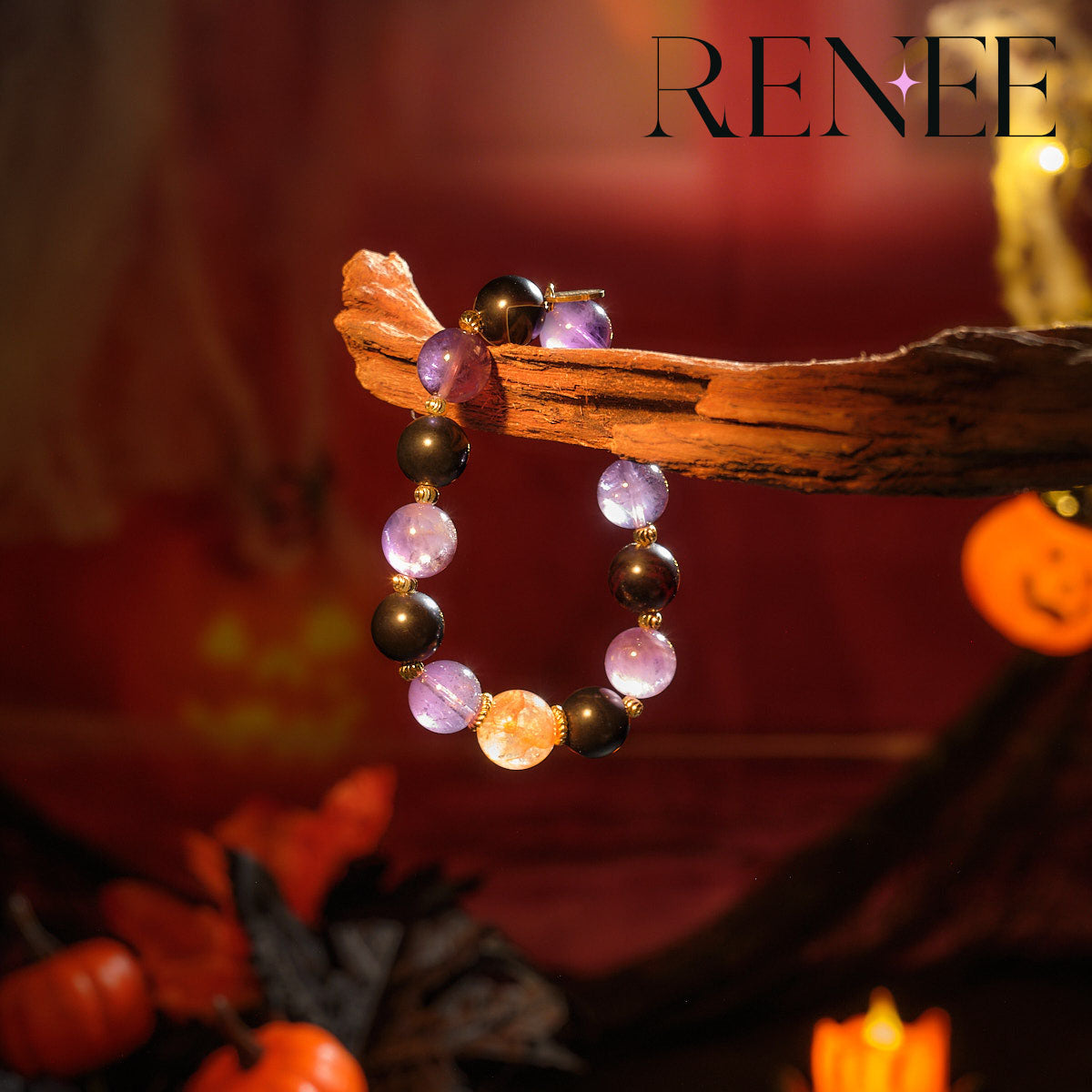 The purple crystal symbolizes the mysterious color of the pumpkin, the black crystal represents the dark background of the pumpkin field, and the gold decoration is like the light of a pumpkin lantern. The overall design shows the lively scene of the pumpkin feast, implying harvest and joy.