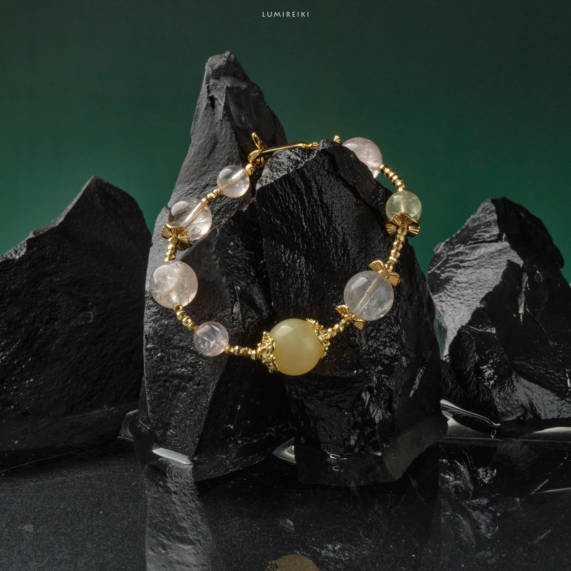 One look at this Topaz & Cosmic Bracelet, you’ll feel its cosmic pull. Topaz, a solar - plexus spark, fuels confidence, while Black Obsidian shields from chaos. “I am ready to chase dreams and step into fearless power.”