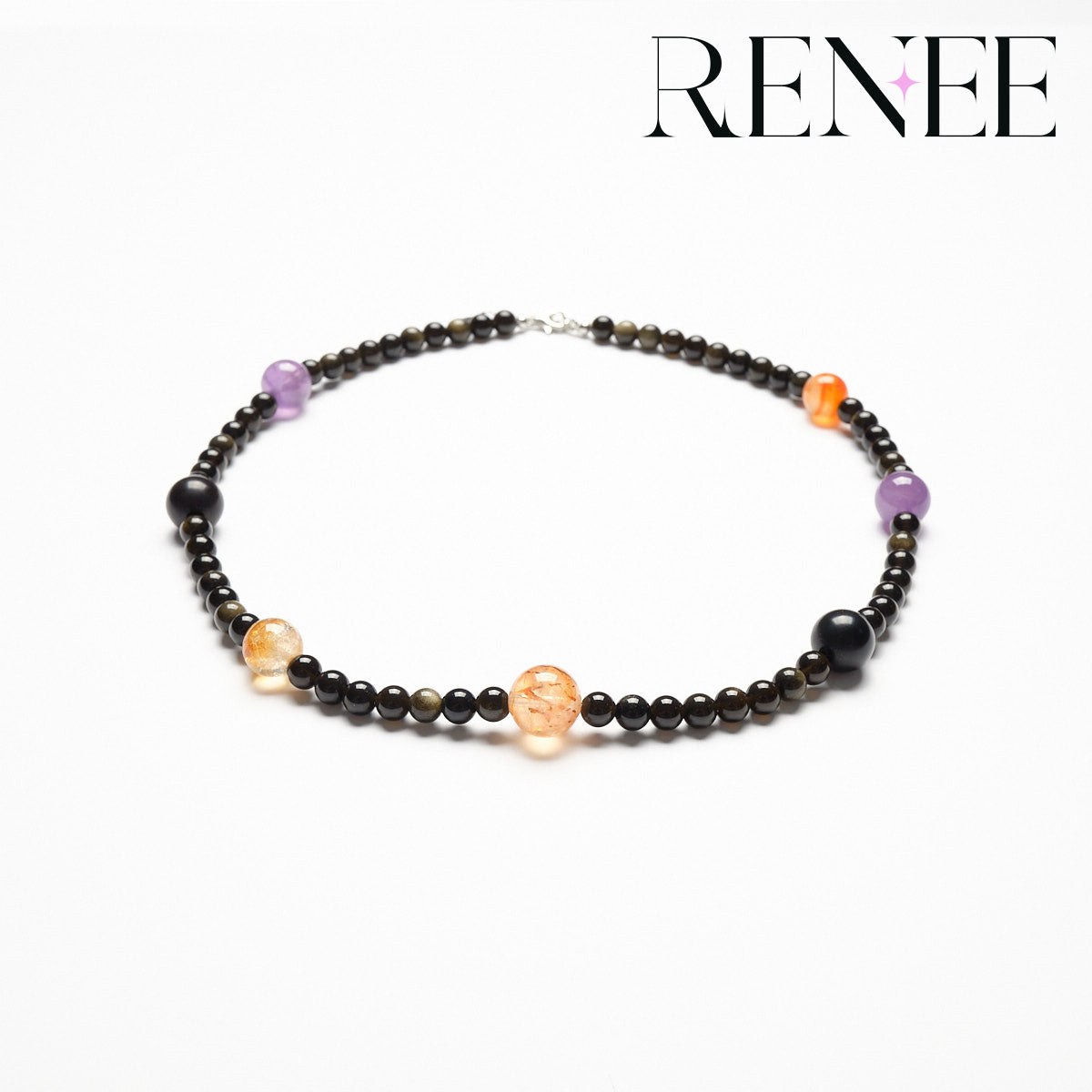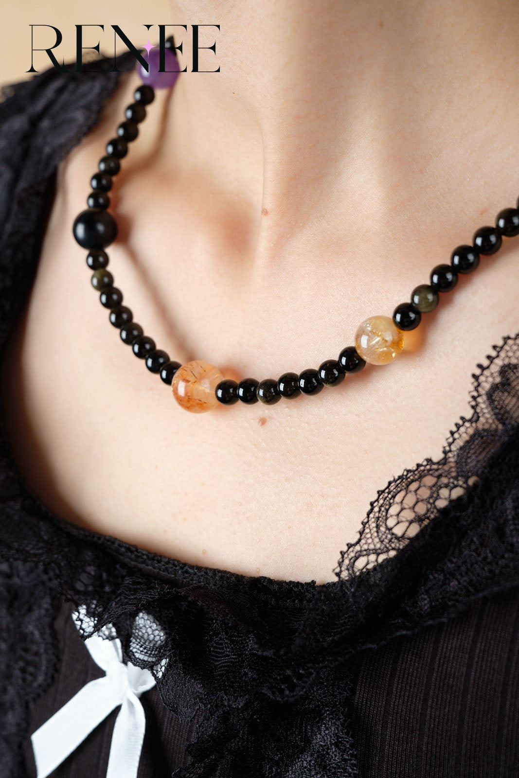 Agate is believed to balance emotions and bring peace. Amethyst helps relieve stress and enhance focus. Black agate is often seen as enhancing protection and warding off negativity. Black gold super seven is believed to boost aura and bring a sense of strength. Yellow quartz is also believed to inspire action and gather positive energy. Silver obsidian is believed to stabilize the mind and enhance a sense of security. Combining multiple gemstones creates a more comprehensive effect.