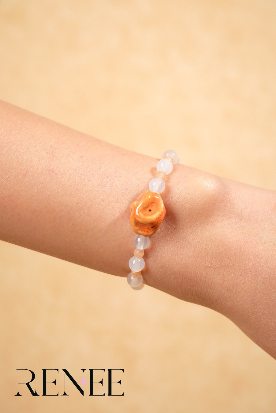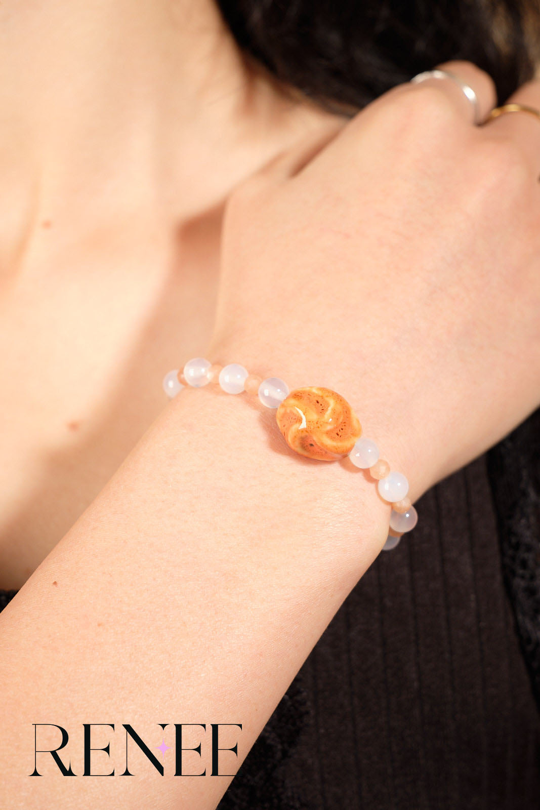 White chalcedony is often believed to soothe emotions, help calm the mind, improve interpersonal relationships, and make people more gentle and friendly; golden sunstone is seen as stimulating vitality, bringing positive energy, and is also said to attract good luck and enhance self-confidence.
