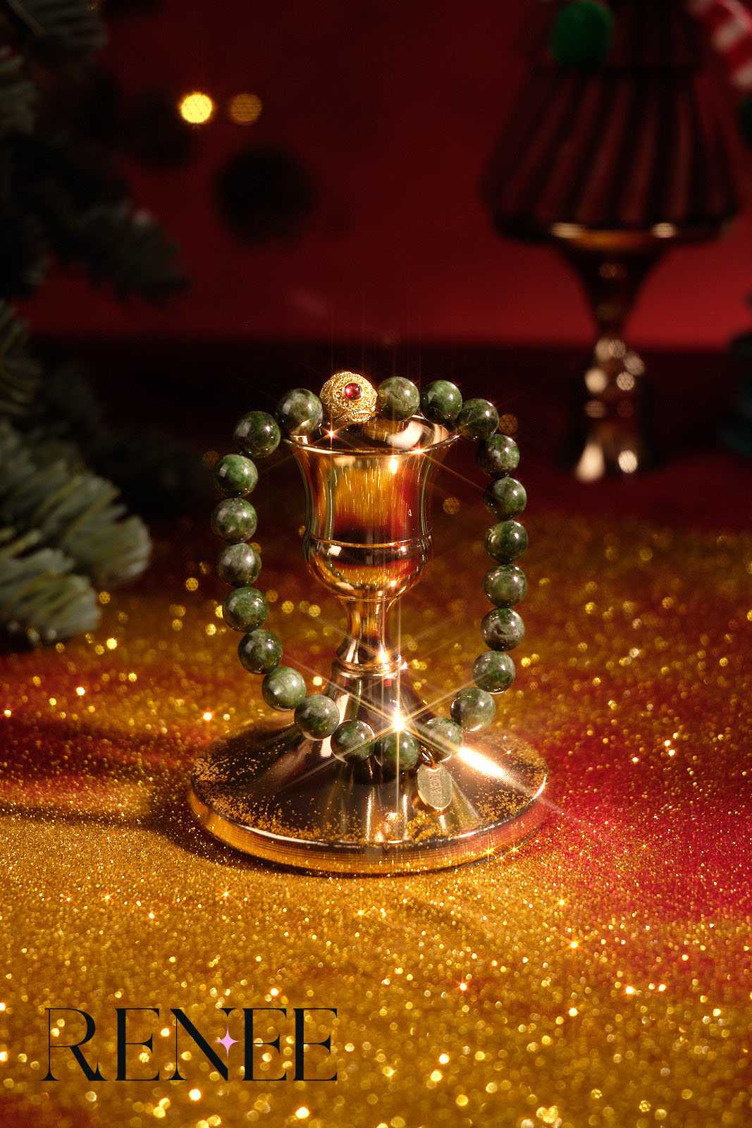 Red, white and green crystals surround a small red decoration, just like a Christmas wreath surrounding a gift in the center. The white represents the purity of snow, the red represents the passion of fire, and the green represents the vitality of the tree, together forming a complete Christmas picture, symbolizing the perfection and happiness of Christmas.
