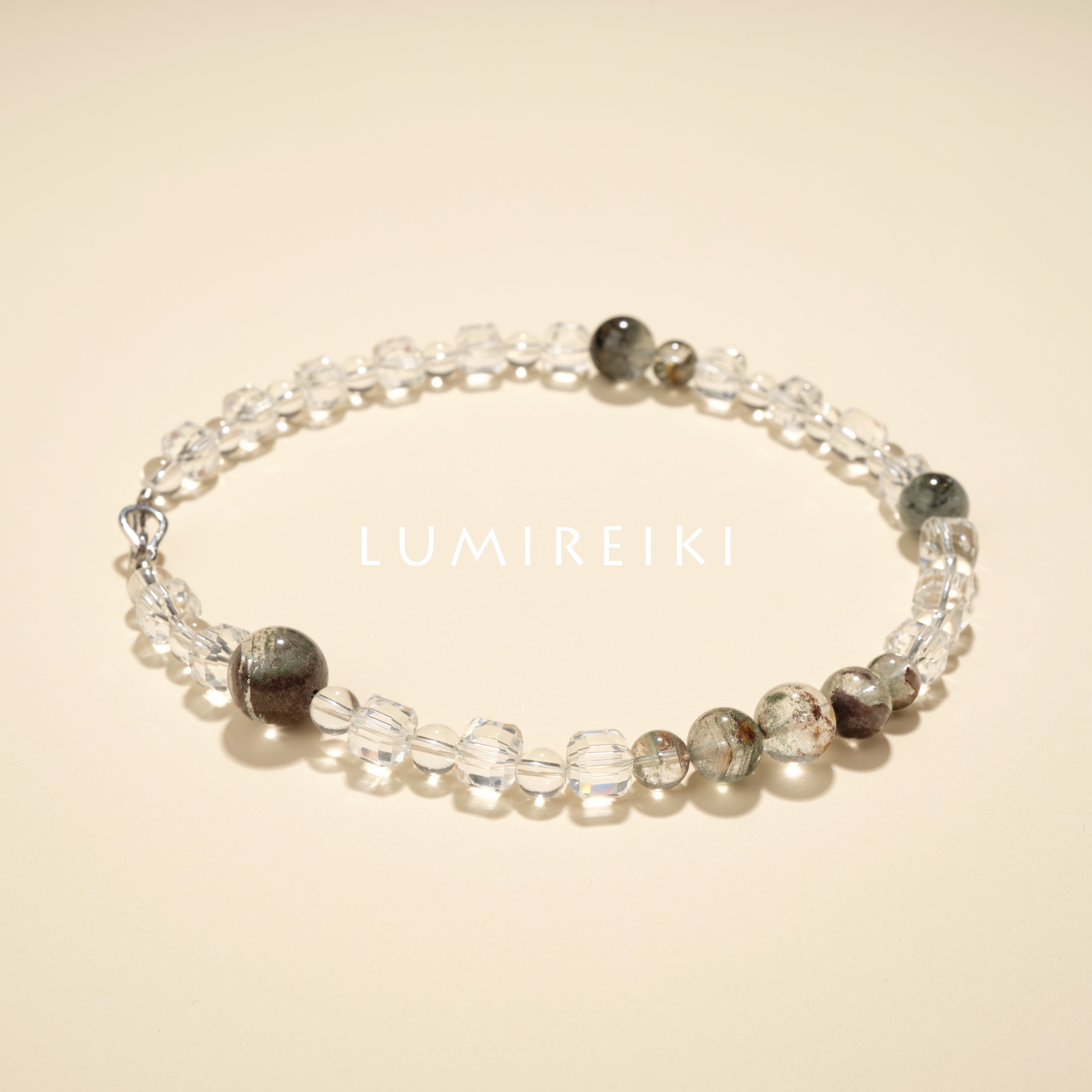 The Green Phantom Prosperity Bracelet is a transformative accessory. At its heart is a Green Phantom from Brazil, flanked by Rhodochrosite, Amazonite, and Lapis Lazuli. It harmonizes multiple chakras, promoting energy circulation, relieving fatigue, and enhancing communication and spiritual awareness. Ideal for those seeking holistic growth.