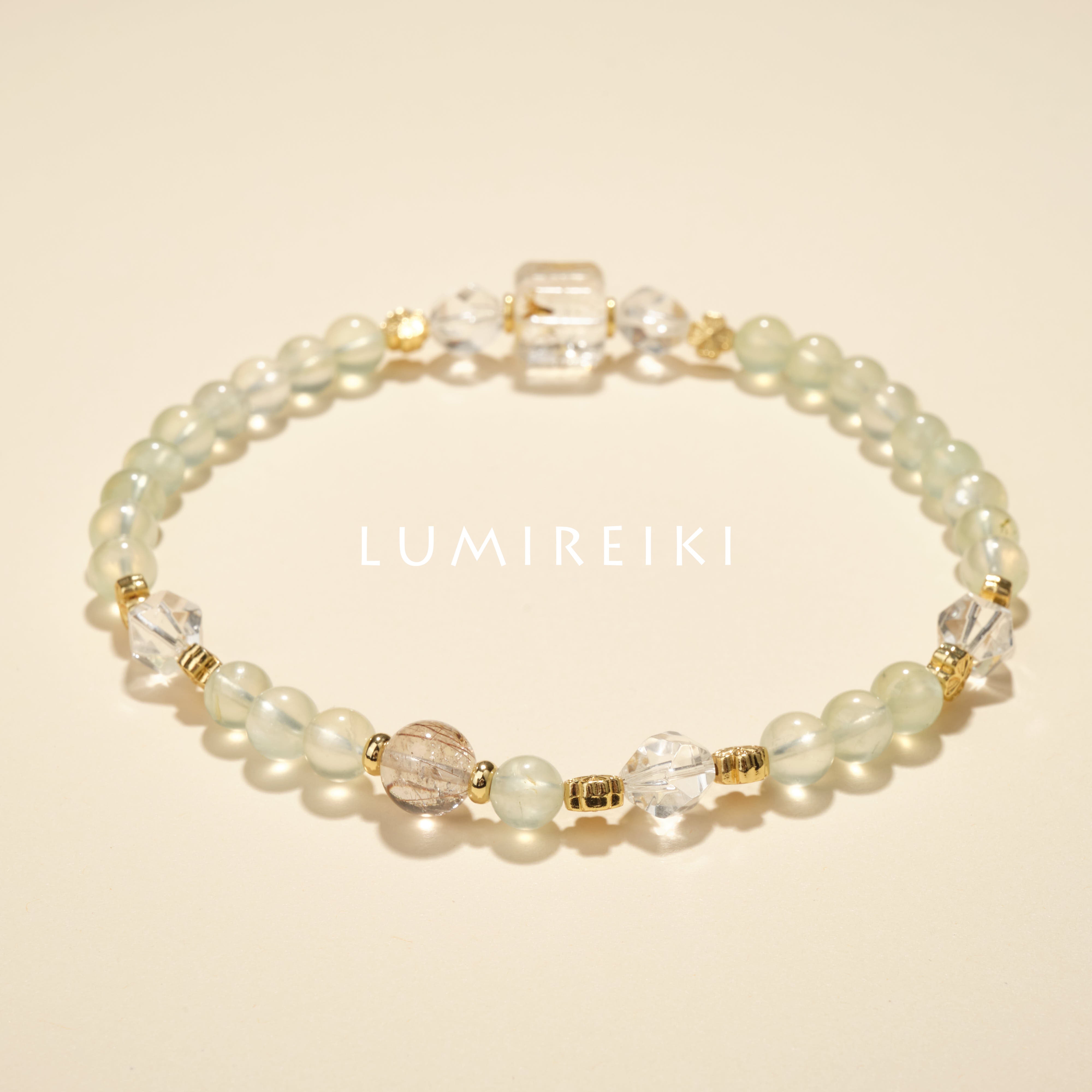 This bracelet supports those overwhelmed by stress, fatigue, or creative slumps. If work drains your energy, deadlines cloud focus, or financial pressures feel heavy, it helps. Green Prehnite renews energy in long meetings, White Quartz sharpens clarity for decisions, and Black Gold Super calms nerves in high-stakes situations. Wear it during busy days, brainstorming, or unwinding to regain balance and face challenges with confidence.
