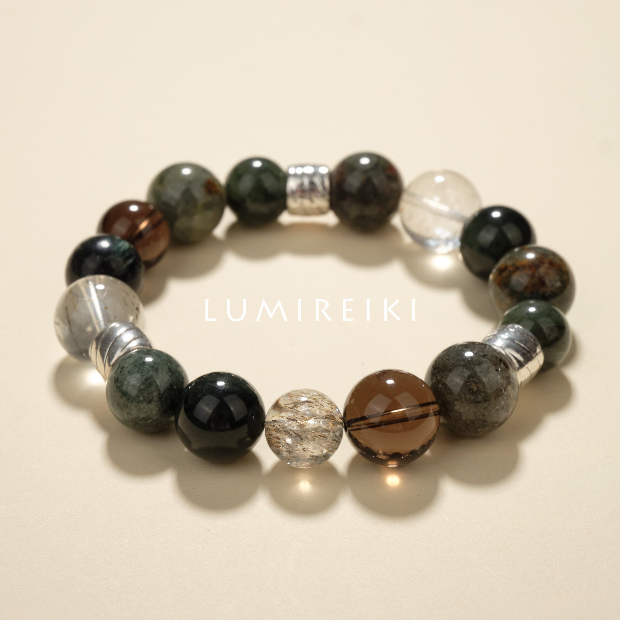 Black Super Seven (10.8mm/13.2mm): A protective powerhouse from Uruguay, its dark hues absorb negative energy like a sponge, shielding your aura from daily drains.
