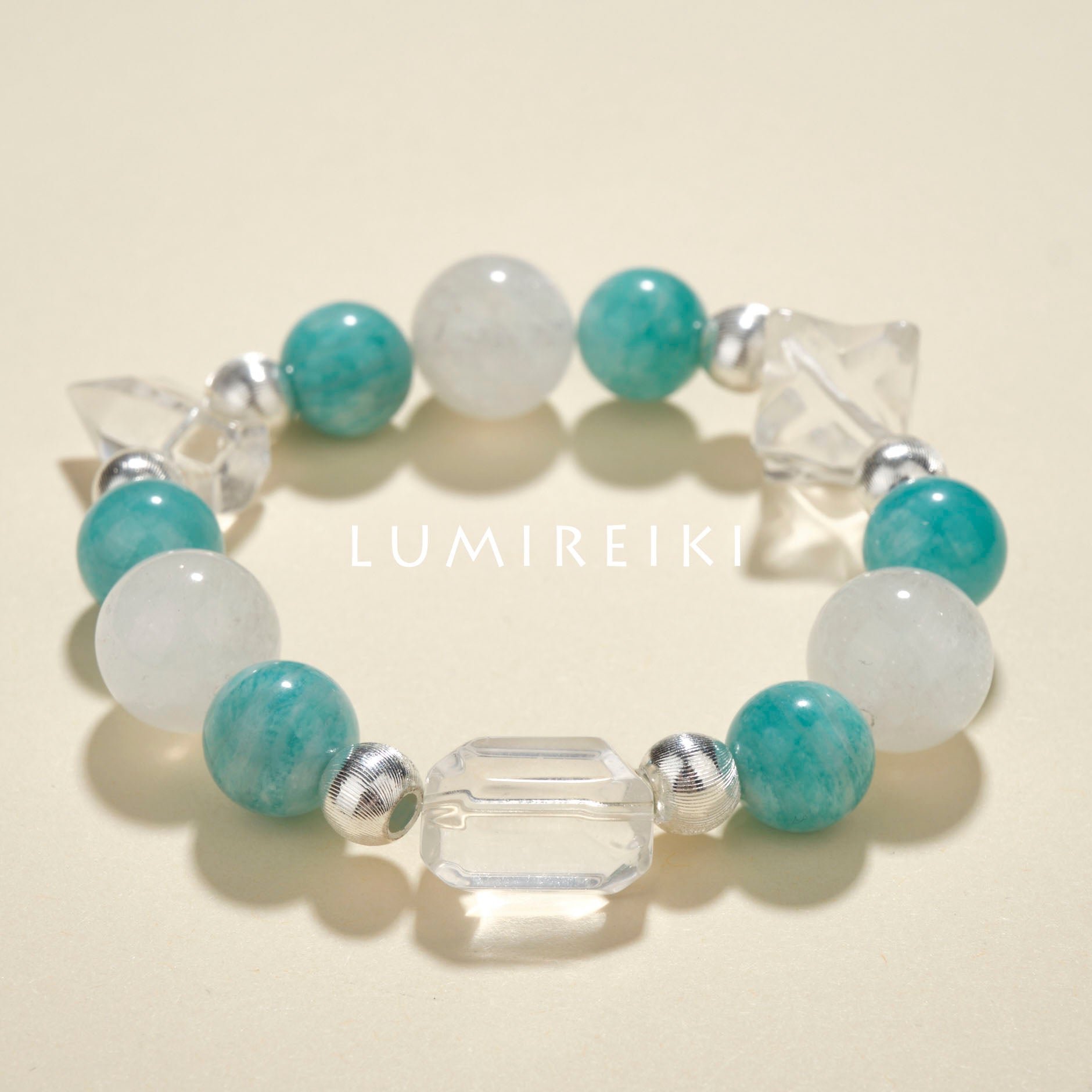 This bracelet is for those mired in life’s hardships—crushed by work stress, haunted by anxiety, or adrift in confusion. Picture endless deadlines, a restless mind, or an uncertain future. White crystal dispels negativity, amazonite calms turmoil, and white asher stabilizes your aura. Adorn it in chaotic times, anxious moments, or when lost, to regain clarity, find peace, and gather the resolve to press on.