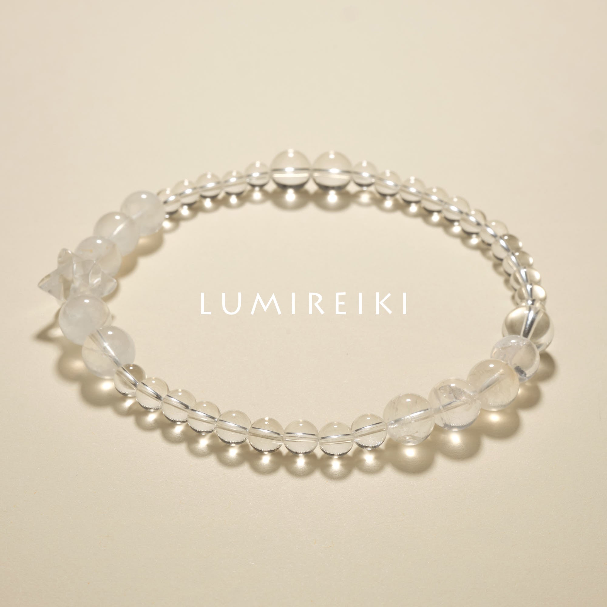 Let the clarity of Clear Quartz Angular light your path. As a symbol of pure, amplified energy , it sharpens focus, banishes mental fog, and purifies your aura. Snowstorm adds courage to face challenges, while Snowflake Phantom nurtures inner peace. Together, they align your mind and spirit. With this bracelet, I sharpen my mind, purify my energy, and embrace every challenge with clarity.