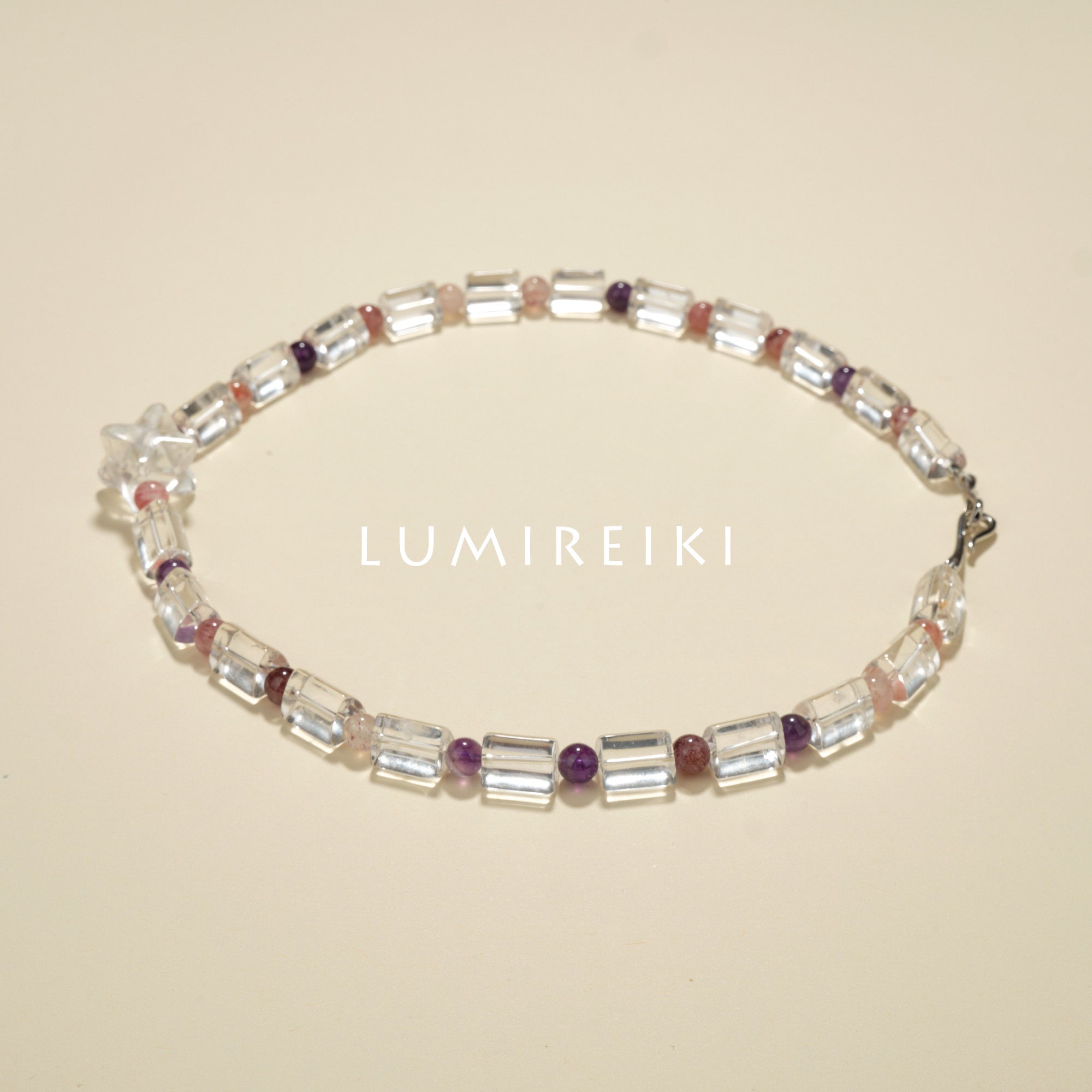 This necklace is for those drowning in work stress, tangled in relationship strains, or lost in inner chaos. Picture endless deadlines, heated arguments, or sleepless nights with a racing mind. Clear Quartz Square Corners sweep away negativity, sharpening focus amid the mess. Old Mine Strawberry Crystal soothes raw emotions, mending bonds and spreading warmth. Wear it during frantic work hours, after disputes, or on restless nights—it’s your key to clarity, love, and resilience in life’s tough moments.