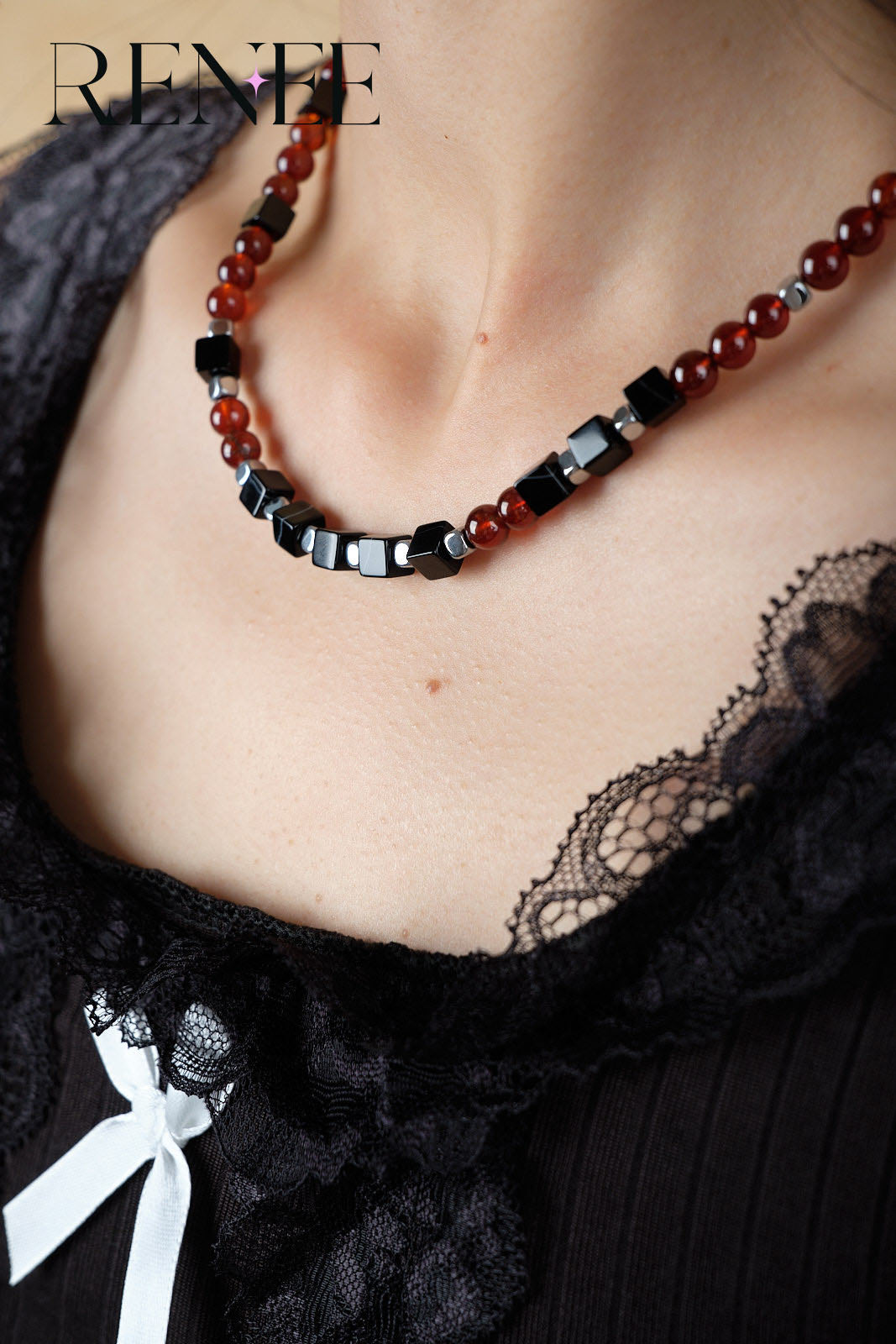 In traditional concepts, garnet is believed to promote blood circulation, boost vitality, and protect the aura; black agate is often seen as able to ward off evil, stabilize emotions, and enhance the aura. Combining the two, these effects are believed to complement each other, forming a stronger protective and regulating effect.