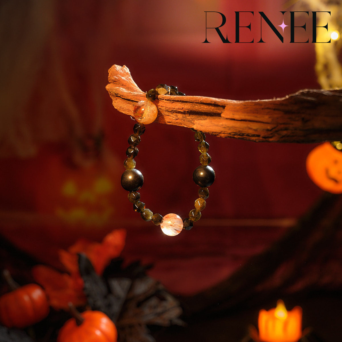 The black crystal represents the mysterious figure of the black cat, and the orange crystal symbolizes the strange light in the black cat's eyes. The overall design shows the scene of the black cat mysteriously appearing on Halloween night, implying unknown surprises and mysterious protection.